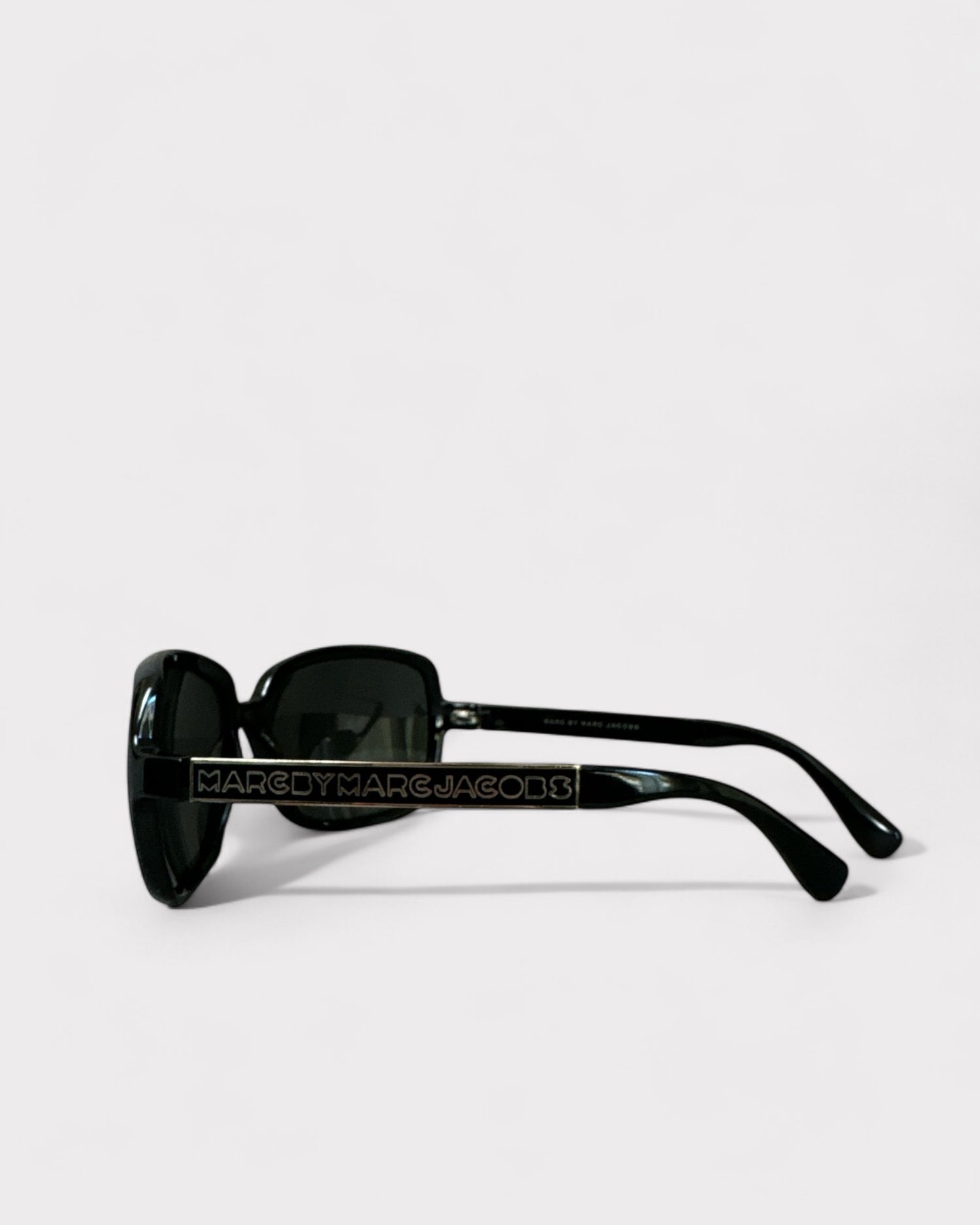 Ces lunettes de soleil Marc by Marc Jacobs affichent un design élégant et moderne. Elles sont dotées de larges branches noires, avec le nom de la marque inscrit en lettres audacieuses sur le côté. Les verres sont de couleur sombre, offrant une protection contre le soleil tout en ajoutant une touche de sophistication. Le modèle est rectangulaire, ce qui convient à un style à la fois chic et intemporel.